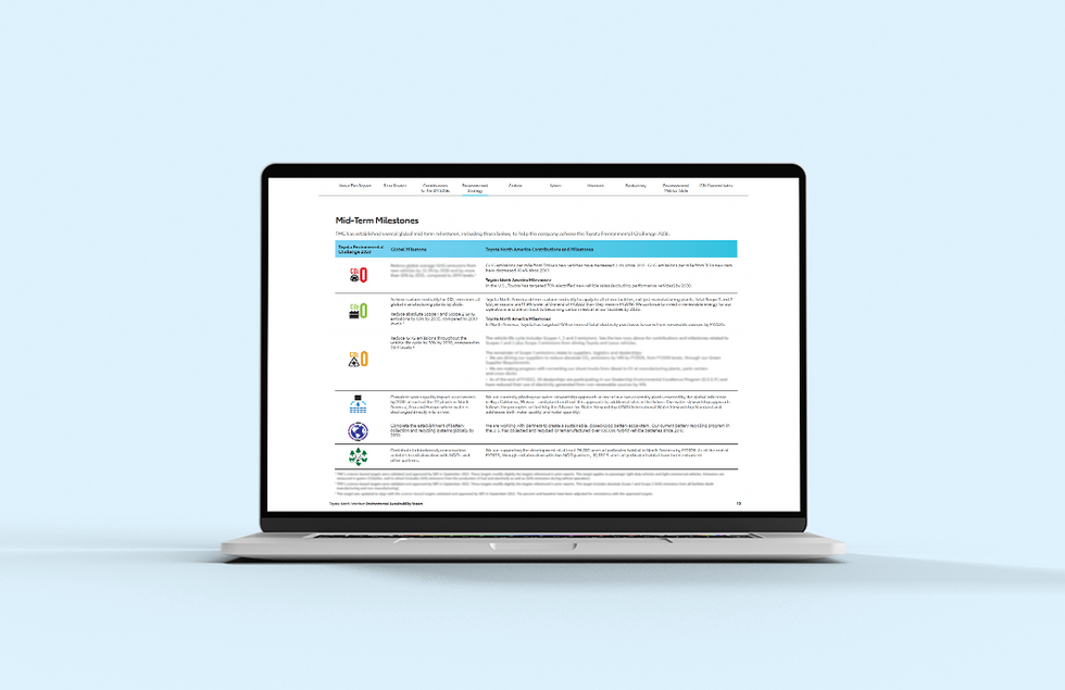Toyota of North America needed a new report for their environmental impact of the 2023 year. I had a great time working with an incredible designer named Joe to create a report that was not only eye-catching but also kept the viewer interested in a report (not always the most fun thing to read).
